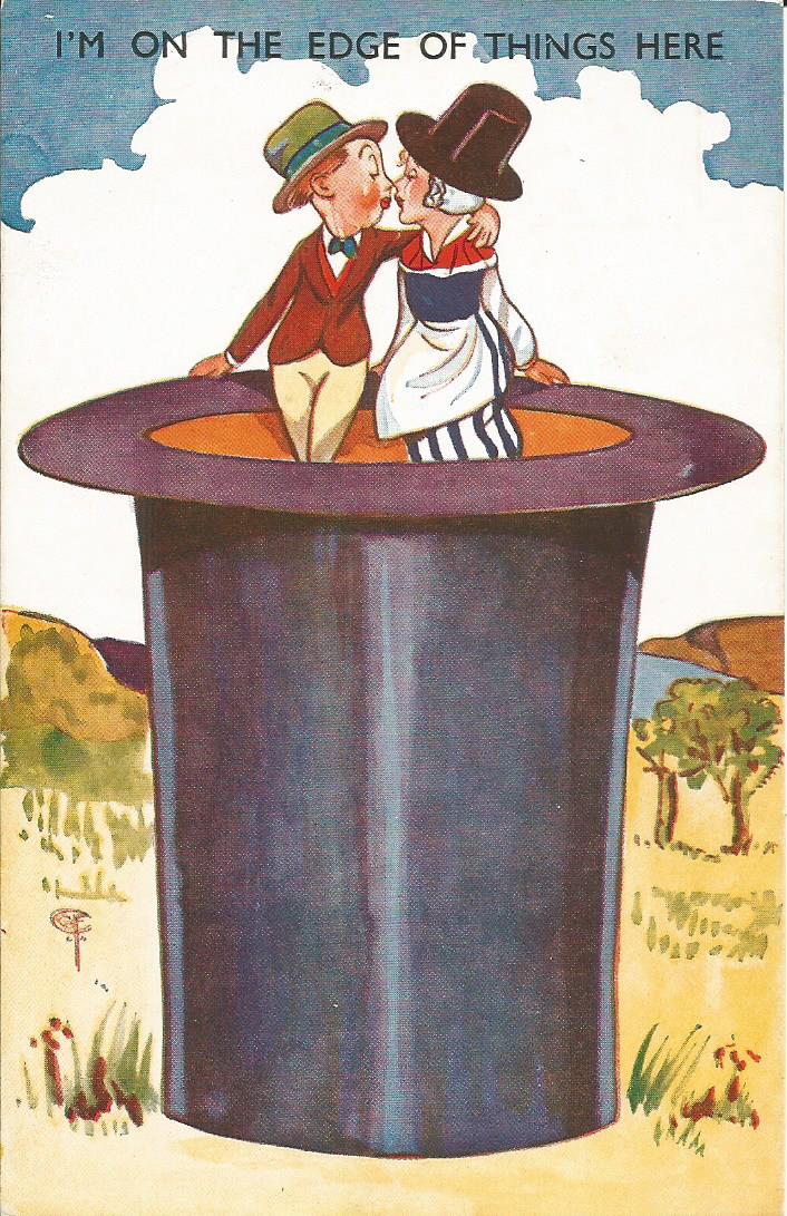 As it was St. Dwynwen's Day on 25th January, [she is the Welsh Patron Saint of lovers], and St. Valentines Day this month, I thought you might like some cards about Welsh kissing. It's interesting that each card has different towns with the similar text. The two that mention Llandudno both say the girls suggest a walk to the pier. The horizontal versions have no publishing name on the back. I like the one with a Welsh lady on top published by Everton telling you how it's done. I have added a transcript of the text to make it easier to read. I've also added a couple of uses for the Welsh hat.